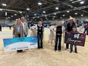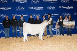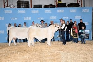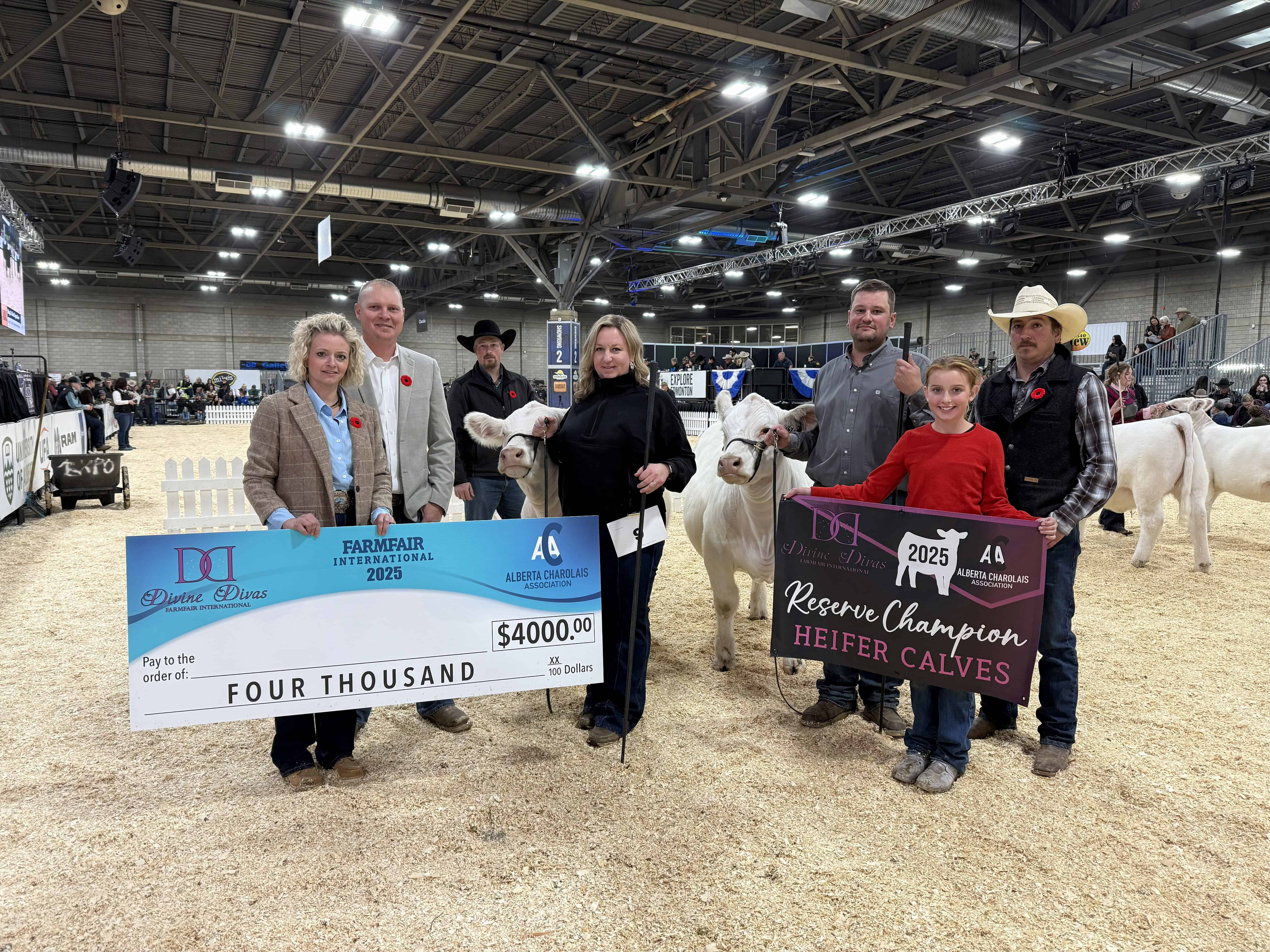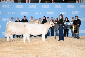 Murray Ranches, Tilley Won the Grand Champion Pair of Heifers at the start of the Charolais Show November 7th in Edmonton at Farm Fair International with Murray’s Design 162N and Murray’s Design 153N both sired by PCC Force of Nature 122J ET. Judges Ryley & Jill Mader, Carstairs then selected ONL Miss Hot Dam 60N and ONL Miss Smooch 65N sired by SVY Historic 241K from O’Neill Livestock, Red Deer County as the Reserve Champion Pair of Heifers.
