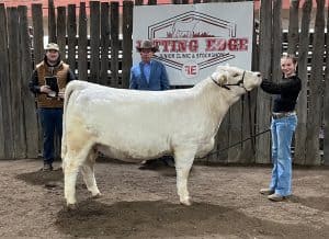 Lot 3, BRIMNERS NACHO 94N, sired by Sparrows Hendricks 278K. Sold for $25,000 to Turnbull Charolais, Pincher Creek, AB.