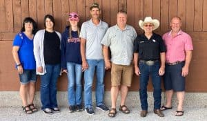 The 53rd Annual Association Charolais du Québec Meeting was held at Dubuc Charolais Farm Inc. Below is the 2025/26 starting on the left: Chantal Raymond Treasurer Secretary, Karine Dubuc 2nd Vice President, Jessica Frost Junior Director, Mark Frost President, Eric Manningham Director, Armand Roy 1st Vice President and National Director and Janick Bouffard Director. Absent Kaven Begin director.